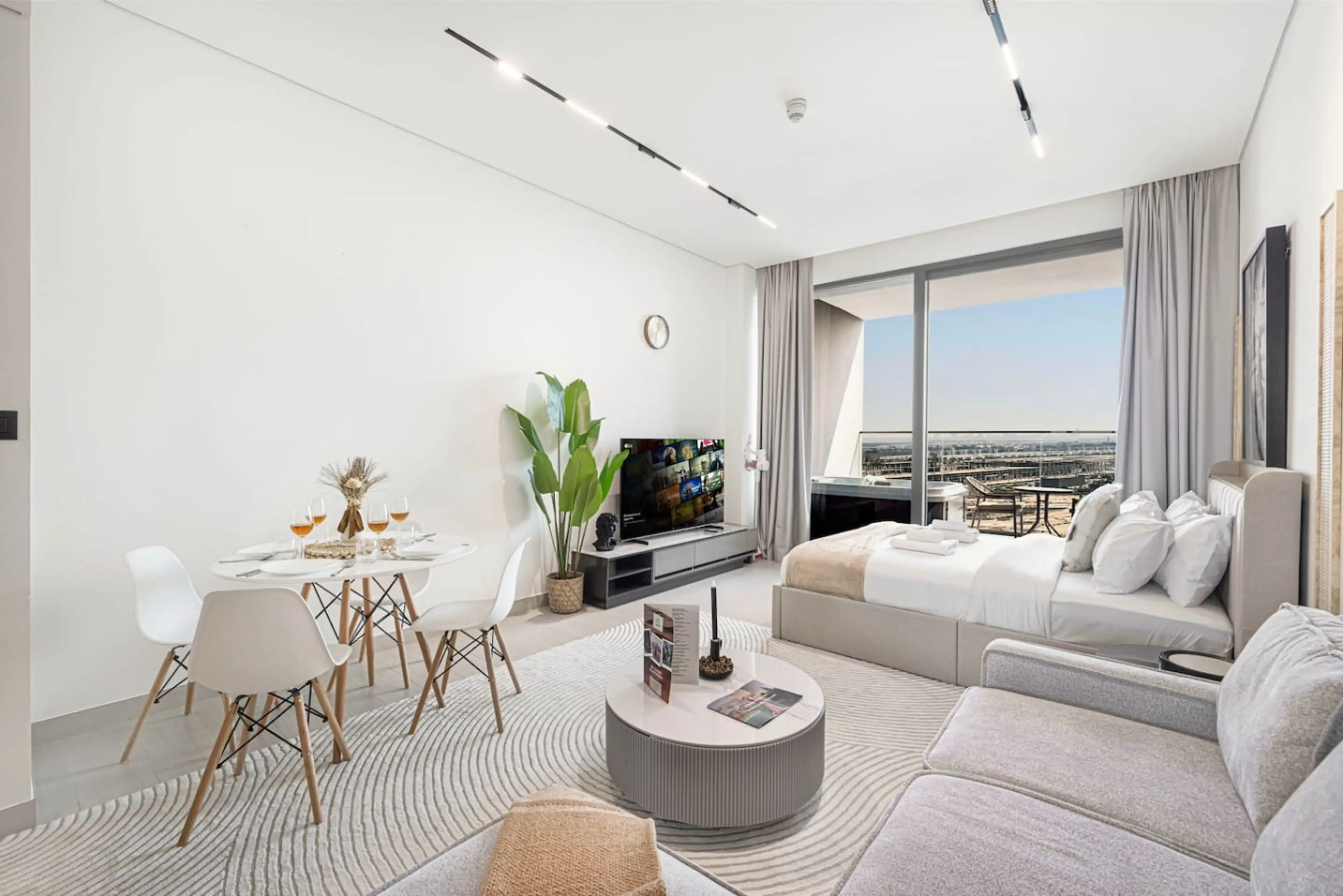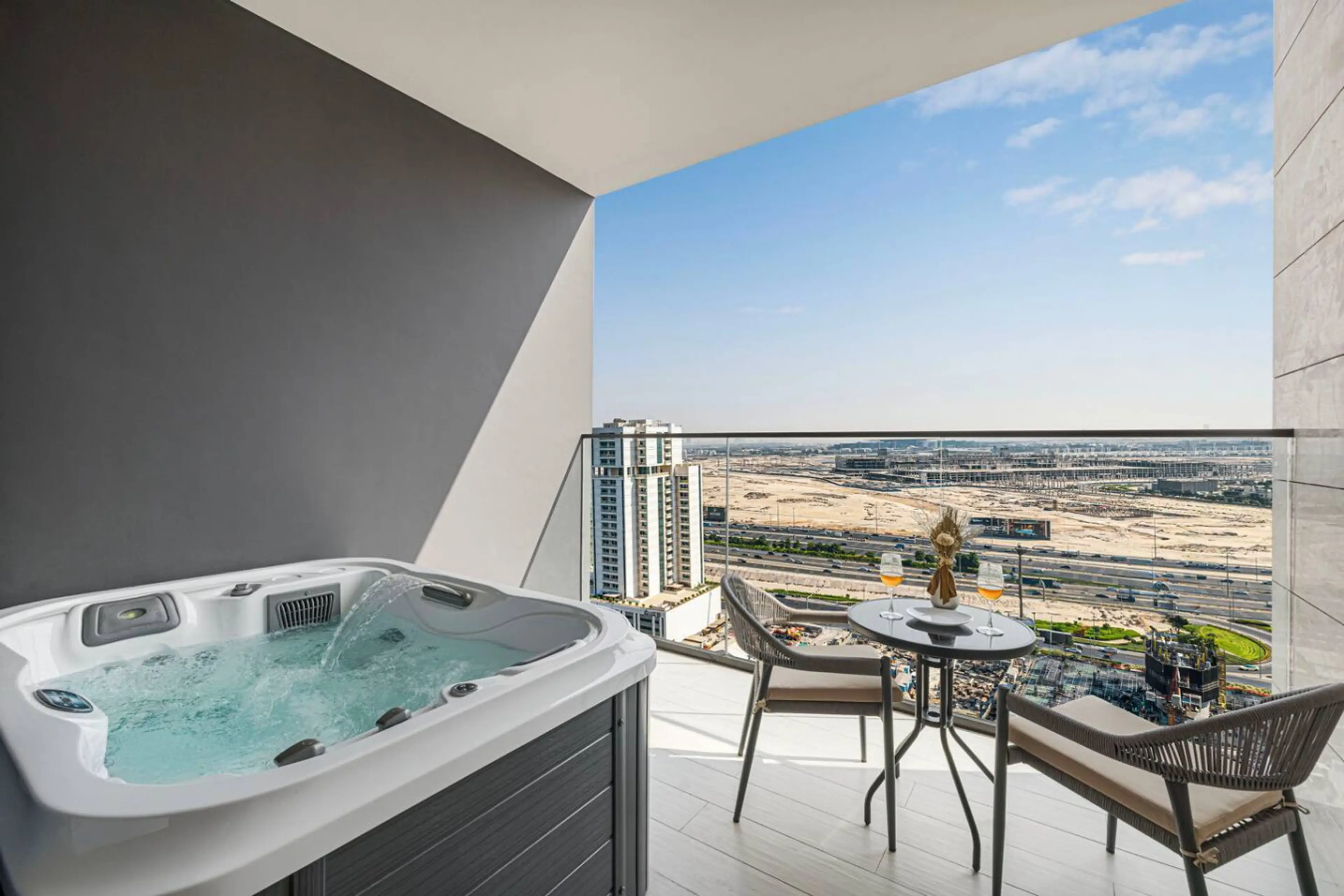 Arabnb presents: Experience elevated living in this beautifully designed studio at Trillionaire Residences, Business Bay. Enjoy skyline views, refined interiors, and a private jacuzzi. Ideal for business or leisure, offering the perfect mix of comfort, style, and convenience. ☞ 5 min to Burj Khali...