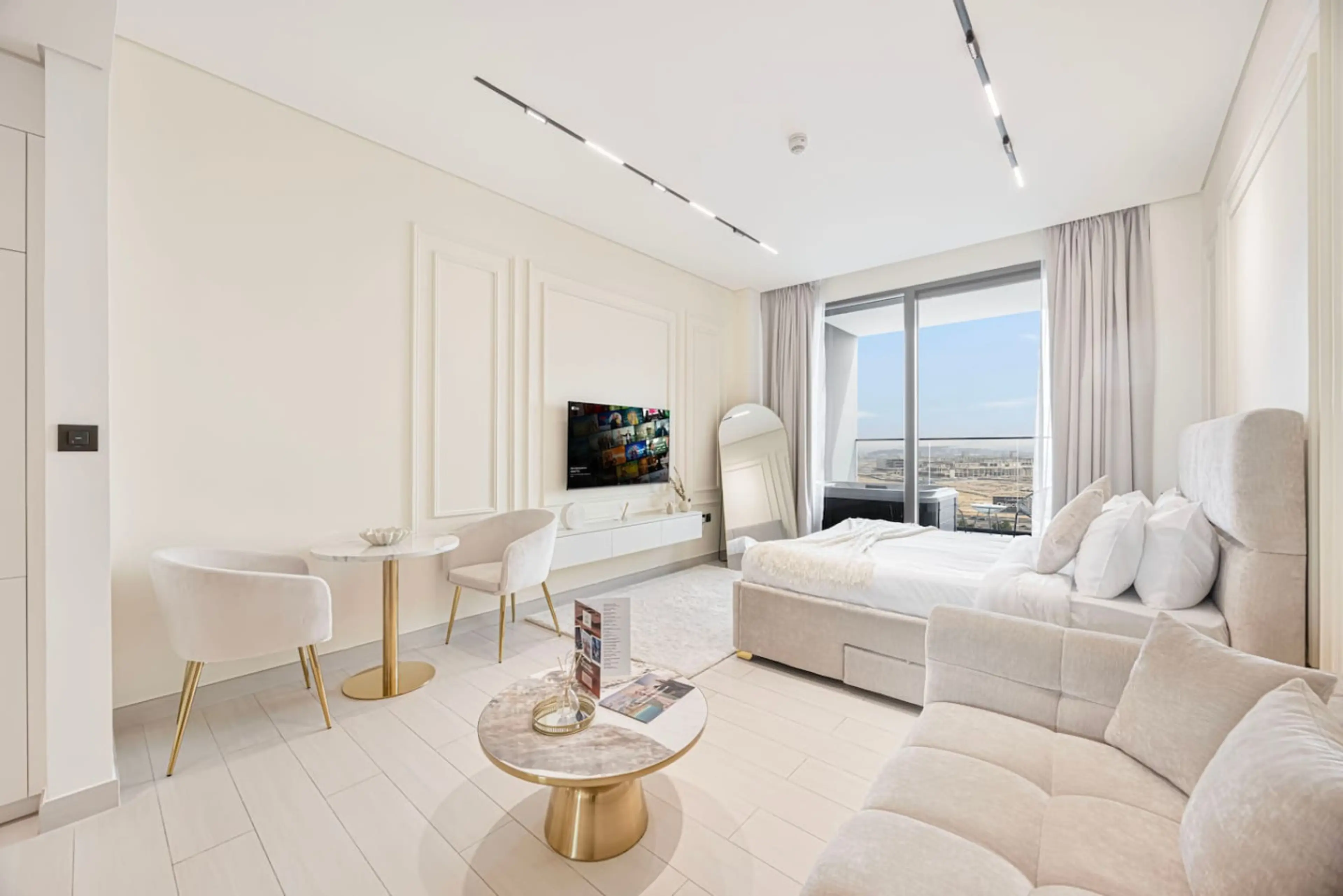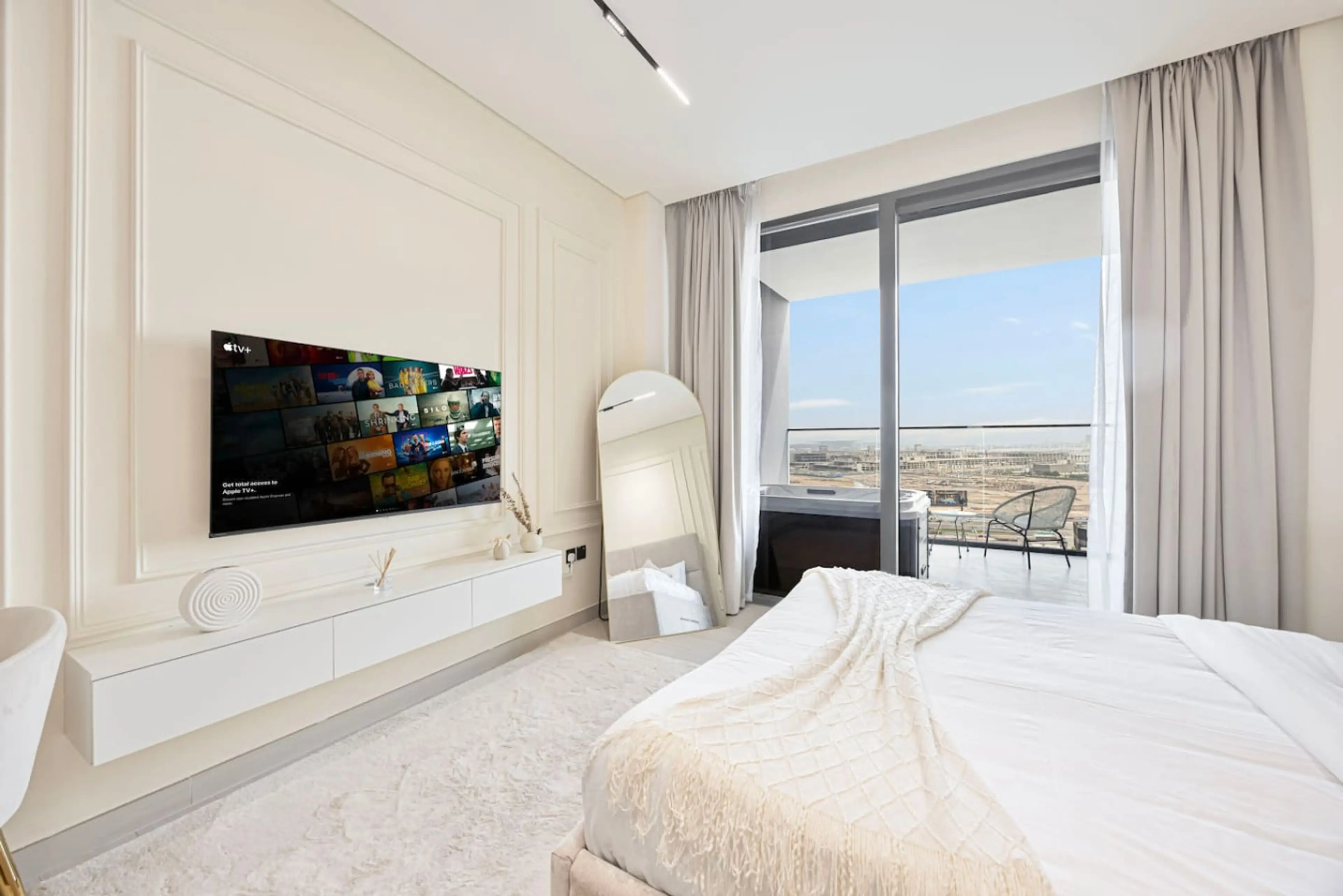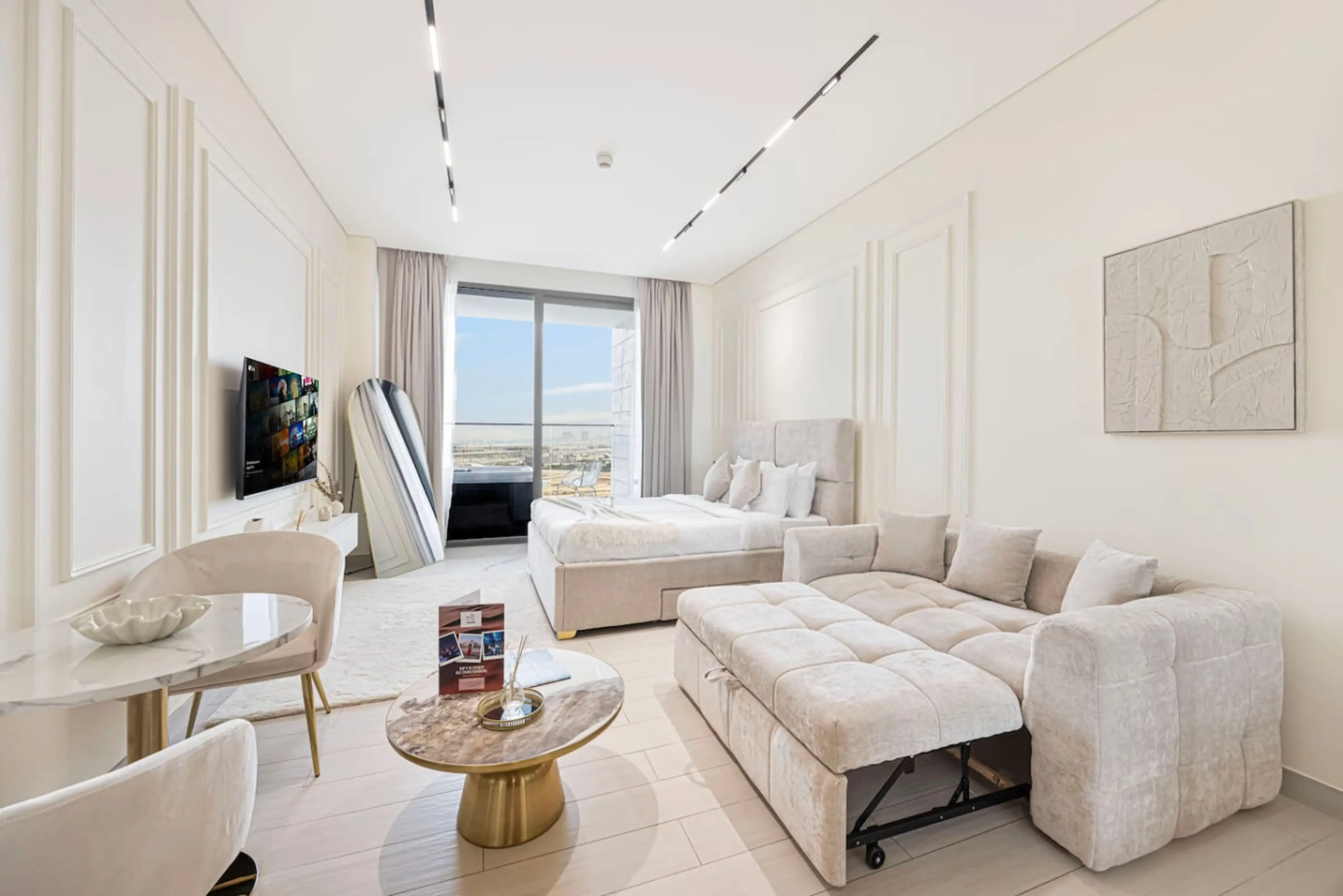Arabnb presents: Experience elevated living in this beautifully designed studio at Trillionaire Residences, Business Bay. Enjoy skyline views, refined interiors, and a private jacuzzi. Ideal for business or leisure, offering the perfect mix of comfort, style, and convenience. ☞ 5 min to Burj Khali...
